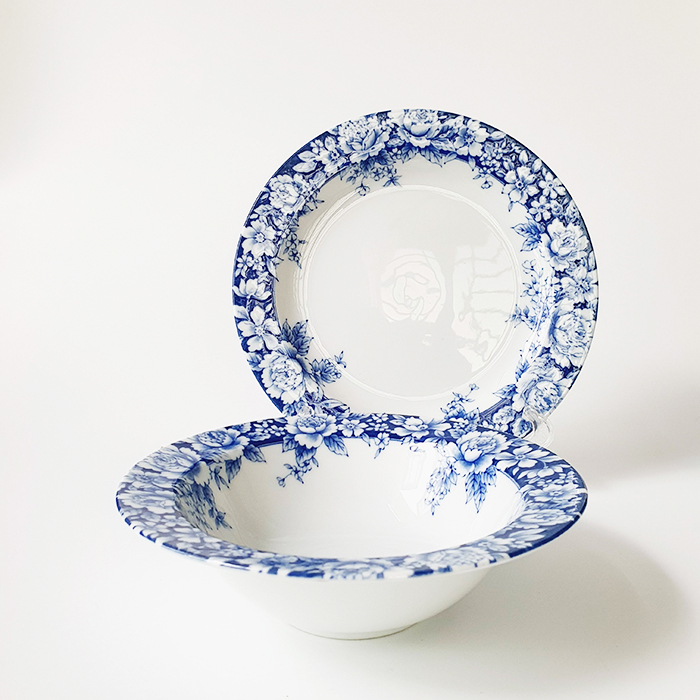 Kích thước: Dĩa 20 x 2cm, Tô 17.5 x 5cm