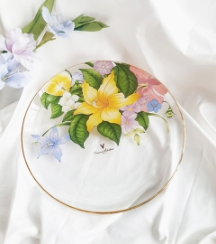 Dĩa to thủy tinh họa tiết hoa viền vàng dày rất đẹp và sang hiệu Valentino của Ý